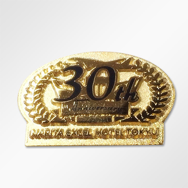 成田エクセルホテル東急様の開業30周年記念バッジを制作いたしました。成田エクセルホテル東急様は、日本の空の玄関口である成田空港より車で約10分のところに位置する、712室の客室、4つのレストラン、結婚式場と宴会場を兼ね備えた総合シティホテルです。成田空港利用客の前・後宿泊の受け入れ、および近隣住民の憩いの場所として、30年たゆまず心からのおもてなしを提供されています。
