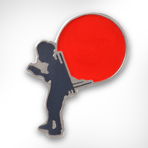 「名刺交換をしなくても掛川YEGだとわかってもらいたい」をコンセプトに挙げられたデザインは「日の丸を背負っている二宮尊徳(二宮金次郎)」。掛川に縁(ゆかり)のある二宮尊徳をモチーフにしたもので、東日本大震災の復興支援に即し、日本を応援するためのポスターやステッカー用として、掛川YEGが創ったオリジナルデザインです。当時の想いを受け継ぎ、この先も忘れないという強いメッセージが、掛川YEGピンバッジに込められることになりました。