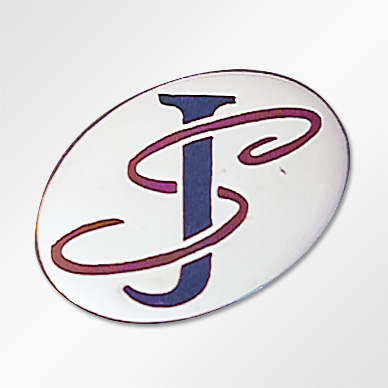 バッジは、「S」「J」から成るロゴマークの雰囲気を生かすように、あえてシンプルな丸形にし、ニッケルメッキで仕上げています。色付けに、発色の美しい「研ぎエポ」を採用することで、よりデザインが引き立ちました。